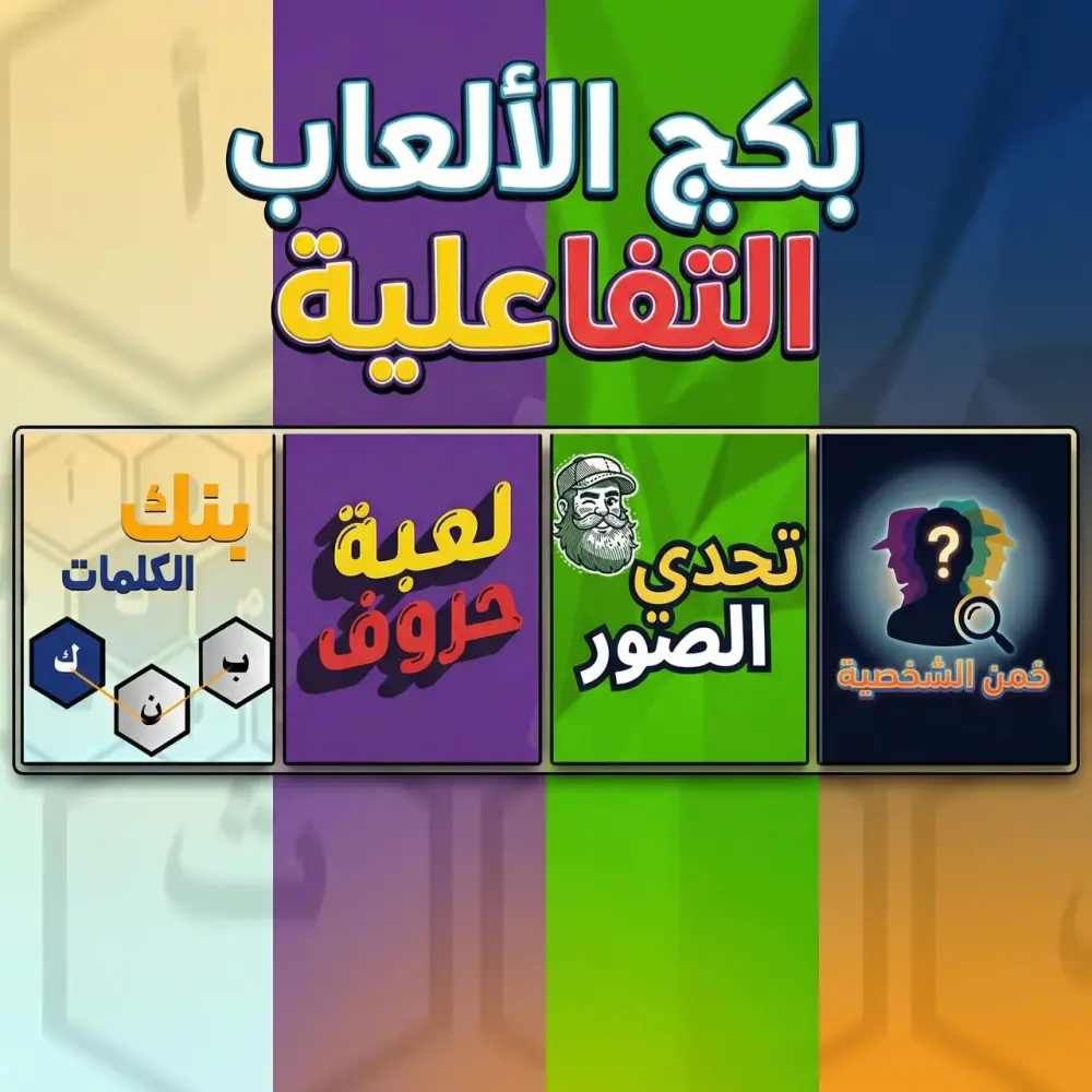 اختر حرف وجاوب على السؤال قبل ما يخلص الوقت! لعبة معلومات عامة جماعية — فريقين يتنافسون، وكل فريق يختار حرف ويجاوب. تقدر تعرضها على التلفزيون وكل لاعب يستخدم جواله كبازر.