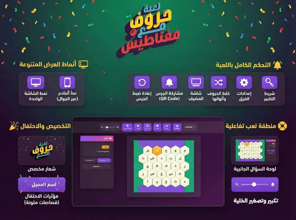 🎉 اطلق التحدي وعيش أجواء المسابقات الحقيقية مع لعبة حروف التفاعلية!